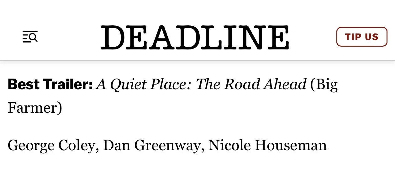 The live-action trailer for A Quiet Place: The Road Ahead, conceptualised & directed by George Coley in collaboration with Big Farmer, has won ‘Best Trailer’ in the European round of the Global Entertainment Awards, and will progress to the final global round, Deadline reports.